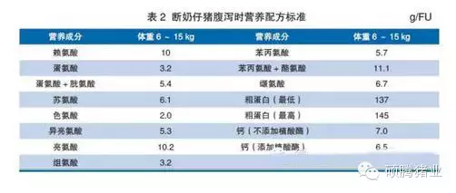 在預(yù)防斷奶仔豬腹瀉上,養(yǎng)豬研究中心做了大量試驗(yàn),發(fā)現(xiàn)飼料中粗蛋白含量過高、高鈣以及大豆粉含量過高都會(huì)引起斷奶仔豬腹瀉增加,當(dāng)斷奶仔豬出現(xiàn)腹瀉,往往會(huì)調(diào)整營(yíng)養(yǎng)配方(見表2)和采取一些管理措施,如斷奶后繼續(xù)飼喂原有飼料、限制飼喂等(4次/d,每次15min內(nèi)采食完成)。