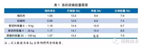 丹麥養(yǎng)豬業(yè)飼料能量一般使用飼料單位(feedunit,FU)來表示,飼料單位分為2種,一種是母豬飼料單位(FUsow),另一種是斷奶、生長(zhǎng)、育肥的飼料單位(FUgp)。一個(gè)飼料單位約等于9000kJ的凈能。丹麥養(yǎng)豬研究中心負(fù)責(zé)制定丹麥豬的營(yíng)養(yǎng)標(biāo)準(zhǔn),包括能量、氨基酸、維生素、礦物質(zhì)等需要,并根據(jù)情況及時(shí)更新標(biāo)準(zhǔn)版本,表1為養(yǎng)豬研究中心2014年4月最新發(fā)布各階段豬的能量需要。