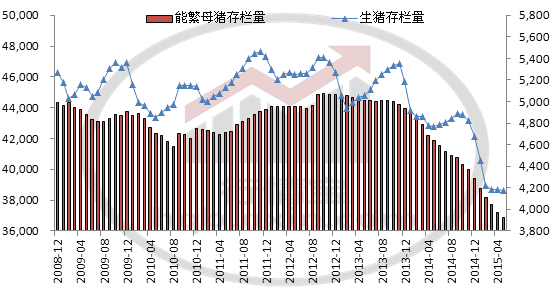 市場反映,6月份在端午前豬價的漲勢變緩及部分地區(qū)的震蕩調(diào)整,使得牛豬出欄量有所增加,預計6月份的生豬出欄量和5月份持平略減,育肥豬存欄量會進一步下降,進而推動7、8月份的豬價上漲。