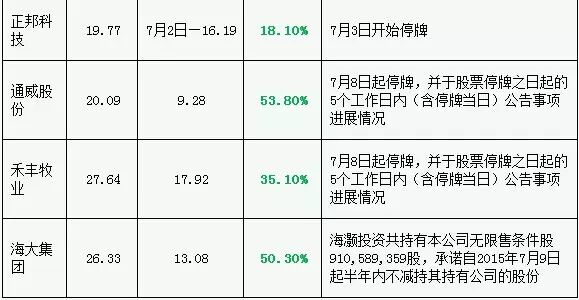 海大集團控股股東承諾2015年7月9日起半年內不減持公司股份。