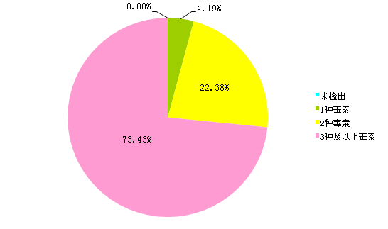送檢的所有樣品均檢測出霉菌毒素;多種霉菌毒素共存現(xiàn)象依然普遍,其中高達95.81%的飼料及其原料受到2種及以上霉菌毒素污染。