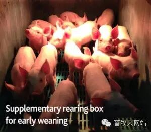 使用專門干顆粒飼料的補(bǔ)充飼養(yǎng)箱(不管豬場(chǎng)人員技術(shù)如何均可使用)越來(lái)越多地用于飼養(yǎng)12日齡的仔豬和減小每窩的仔豬數(shù)量?jī)蓚€(gè)方面。使用這些飼養(yǎng)箱保證了那些弱小的仔豬更有能力競(jìng)爭(zhēng)到母豬奶頭。約等于一個(gè)分娩欄一半大小的飼養(yǎng)箱在“兩段寄養(yǎng)法”的第一步使用。飼養(yǎng)箱置于現(xiàn)有的分娩欄中,供應(yīng)熱量、高乳糖粒料和水。