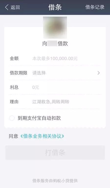 這次支付寶終于向中國的借貸文化宣戰(zhàn)了。在最新的支付寶9.0中,推出了借條功能。通過借條可以直接顯示借款多少,什么時間還,利息多少,理由,并且到期之后,可以支付寶自動扣款,如果你逾期不還,支付寶就會每天定時提醒。當你每天打開手機,第一個收到的提醒是,你已經有一筆5000元的借款289天沒還,你還有一筆10000元的借款389天沒還,你還有一筆10萬元的借款已經789天沒還,當你每天都彈出這樣的提醒的時候,你還敢把手機放在桌子上嗎,還敢拿出你的手機嗎?(當然,你可以關閉提醒)