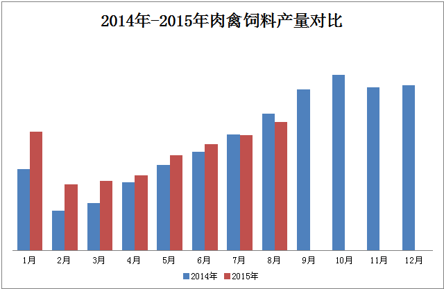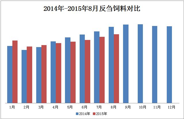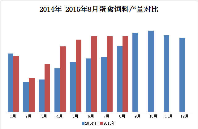 圖4 2014年-2015年8月蛋禽飼料產(chǎn)量對比