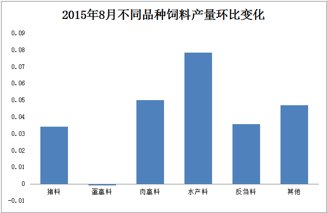 圖1 2015年8月不同品種飼料產(chǎn)量環(huán)比變化