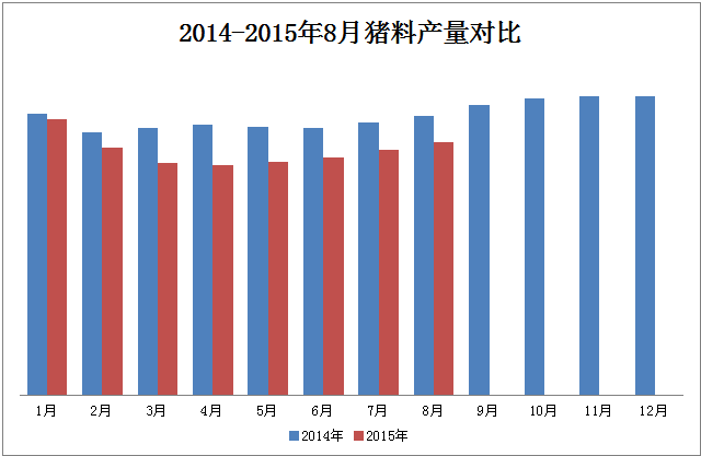 圖3 2014年-2015年8月豬料產(chǎn)量對比