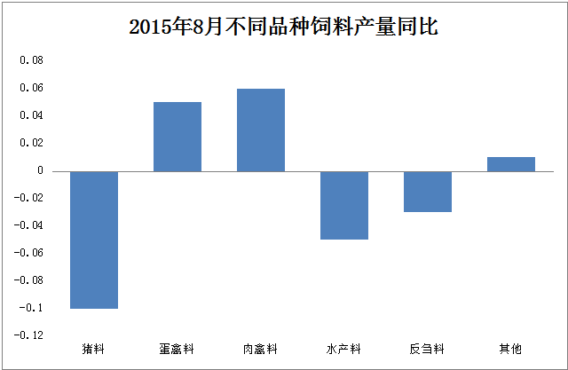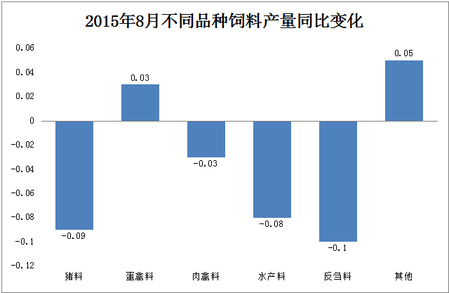 圖7 2015年1-8月不同品種飼料累計產(chǎn)量同比變化