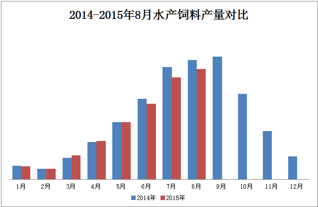 圖5 2014年-2015年8月水產(chǎn)飼料產(chǎn)量對比